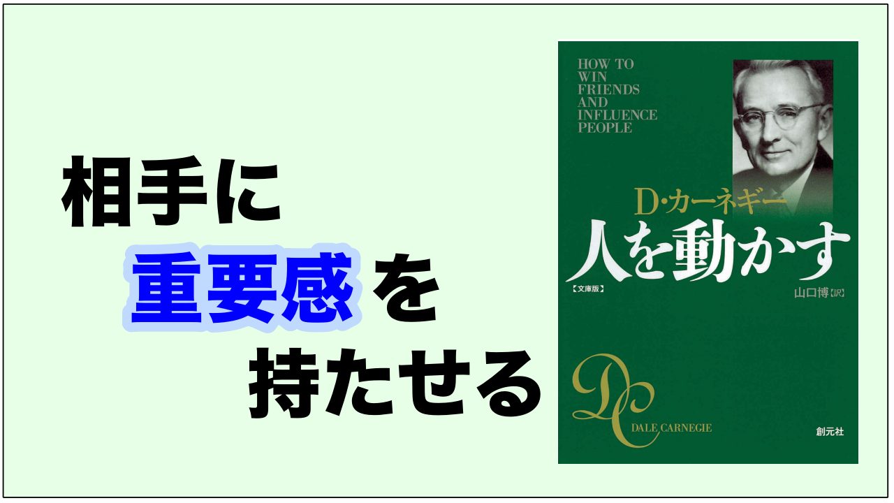 ともかく著書のタイトル「人を動かす」ために、重要感を持たせることが大事ということがわかりました。